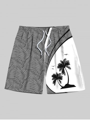 Coconut Tree Tropical Leaf Curve Print Plus Size Matching Hawaii Beach Outfit For Couples - Gray