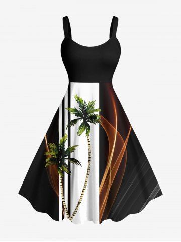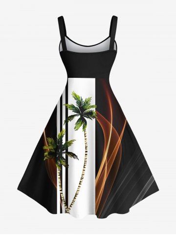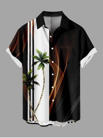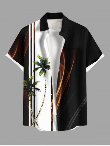 Coconut Tree Two Tone Colorblock Light Beam Print Plus Size Matching Hawaii Beach Outfit For Couples - Black