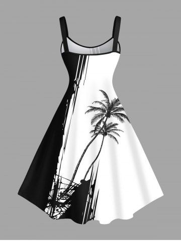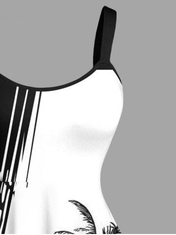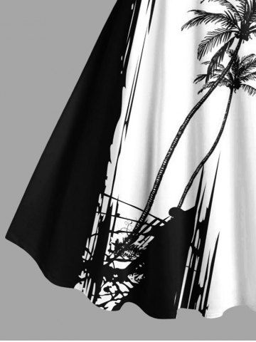 Colorblock Coconut Tree Cliff Print Plus Size Matching Hawaii Beach Outfit For Couples - White