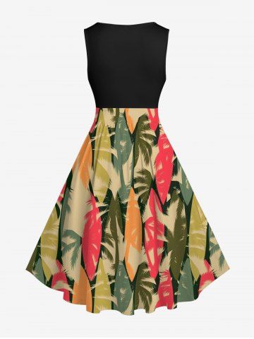 Colorful Coconut Tree Colorblock Print Plus Size Matching Hawaii Beach Outfit For Couples - Black