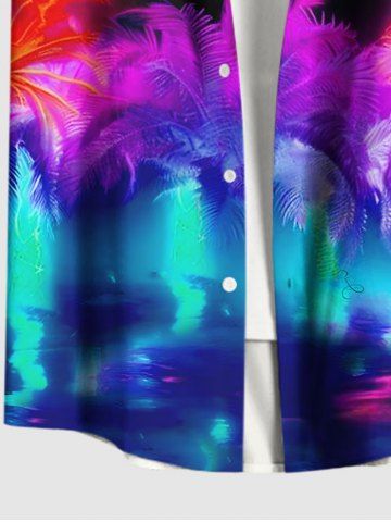 Matching Hawaiian Outfits > Colorful Coconut Tree Light Glitter 3D Print Plus Size Matching Hawaii Beach Outfit For Couples
