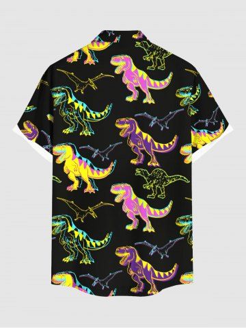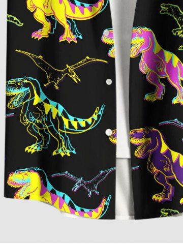 Colorful Dinosaur Print Plus Size Matching Hawaii Beach Outfit For Couples - Black