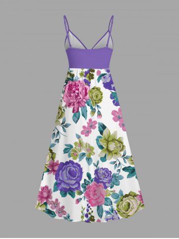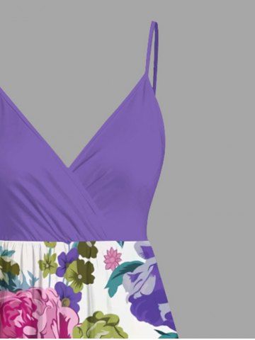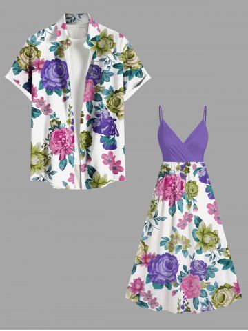 Colorful Flower Leaf Print Plus Size Matching Hawaii Beach Outfit For Couples - Purple