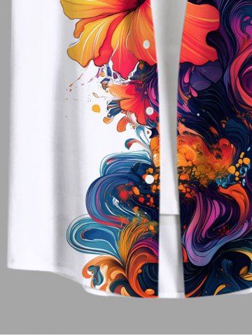 Colorful Flowers Paint Splatter Print Plus Size Matching Hawaii Beach Outfit For Couples - White