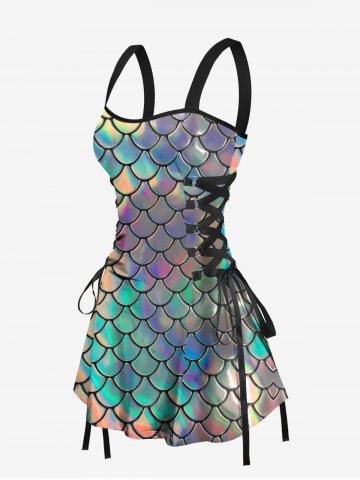 Colorful Mermaid Fish Scale Print Plus Size Matching Hawaii Beach Outfit For Couples - Multi-a