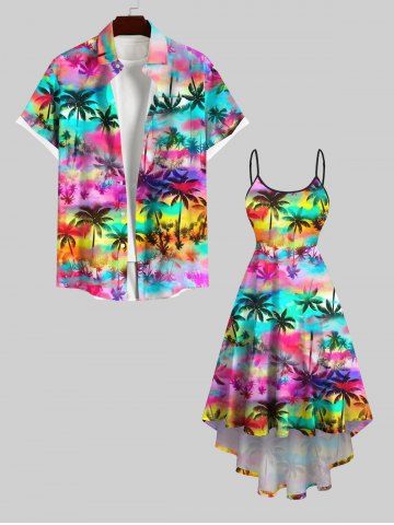 Matching Hawaiian Outfits > Colorful Ombre Coconut Tree Print Plus Size Matching Hawaii Beach Outfit For Couples