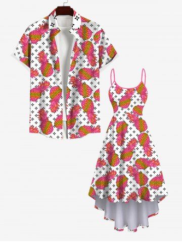 Matching Hawaiian Outfits > Colorful Pineapple Floral Print Plus Size Matching Hawaii Beach Outfit For Couples