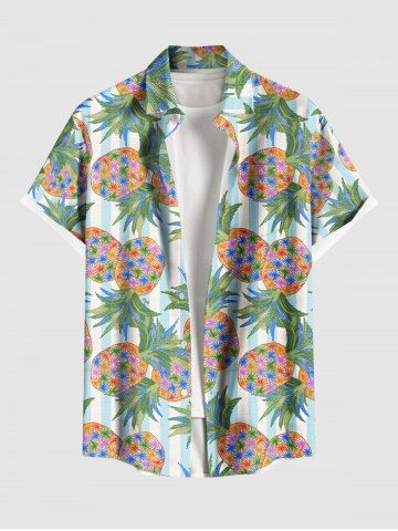 Colorful Pineapple Striped Print Plus Size Matching Hawaii Beach Outfit For Couples - Green