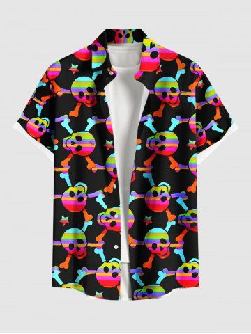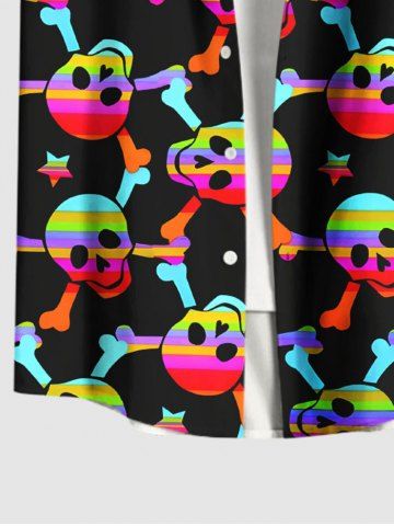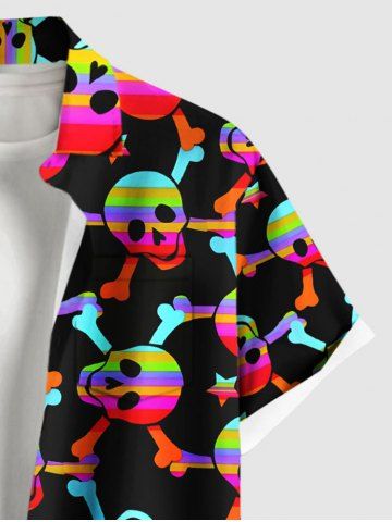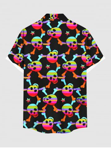Colorful Skull Bone Stars Print Plus Size Matching Hawaii Beach Outfit For Couples - Black