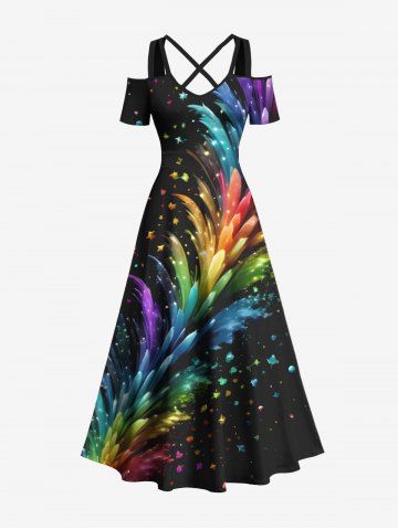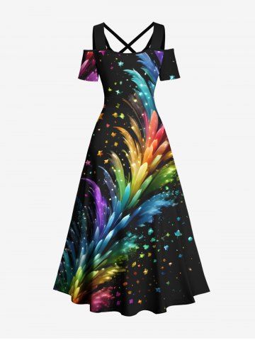 Matching Hawaiian Outfits > Colorful Stars Smoke Print Plus Size Matching Hawaii Beach Outfit For Couples