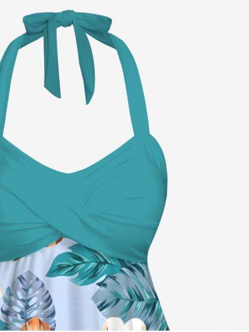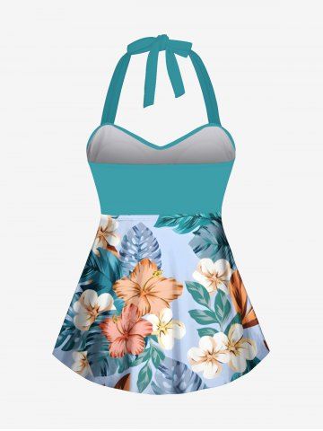 Colorful Tropical Leaf Hibiscus Flower Print Shirt Swimsuit Plus Size Matching Hawaii Beach Outfit For Couples - Green