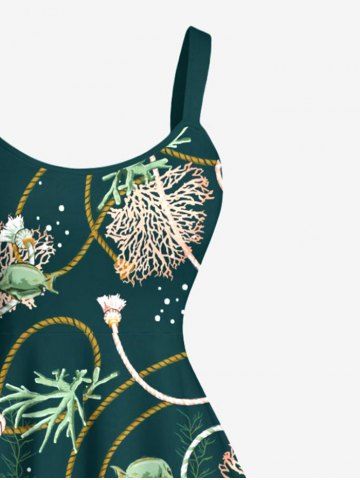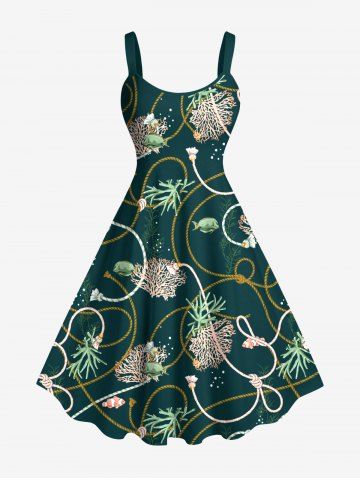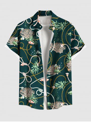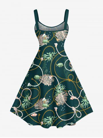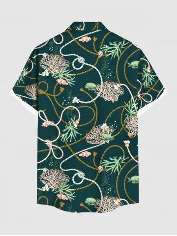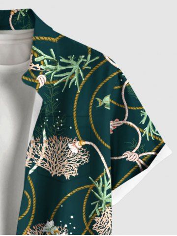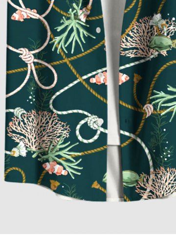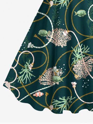 Coral Plant Fish Rope Print Plus Size Matching Hawaii Sea Creatures Beach Outfit For Couples - Deep Green
