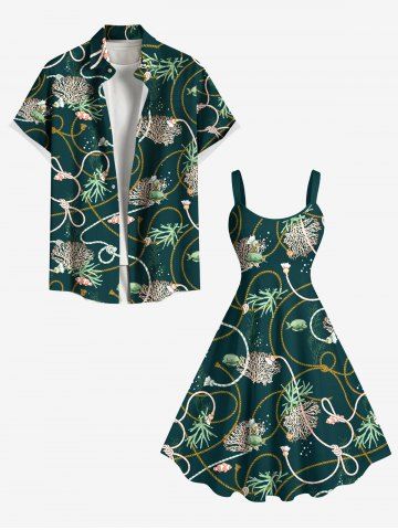 Matching Hawaiian Outfits > Coral Plant Fish Rope Print Plus Size Matching Hawaii Sea Creatures Beach Outfit For Couples