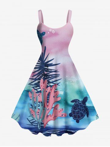 Coral Plant Turtle Tie Dye Ombre Print Plus Size Matching Hawaii Beach Outfit For Couples - Light Pink