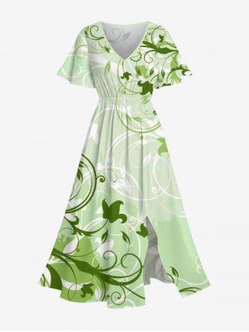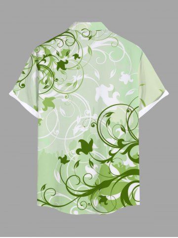 Curve Branch Leaf Print Plus Size Matching Hawaii Beach Outfit For Couples - Green