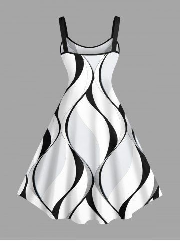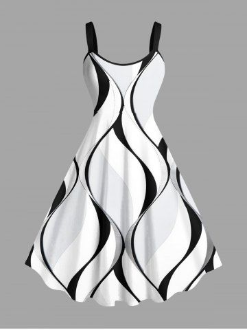 Curve Waves Geometric Pattern Print Plus Size Matching Hawaii Beach Outfit For Couples - White