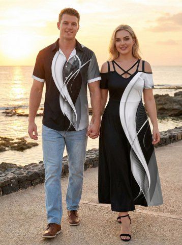 R*****l5Curved Line Colorblock Print Plus Size Matching Hawaii Beach Outfit For CouplesColor: BLACKoh my I love it the shirt and dress fits perfectly u definitely need to measure before u buy..
