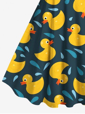 Cute Duck Drop Print Plus Size Matching Hawaii Beach Outfit For Couples - Deep Blue