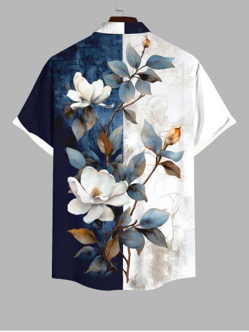 Distressed Colorblock Flowers Leaf Print Plus Size Matching Hawaii Beach Outfit For Couples