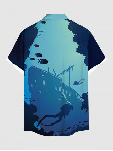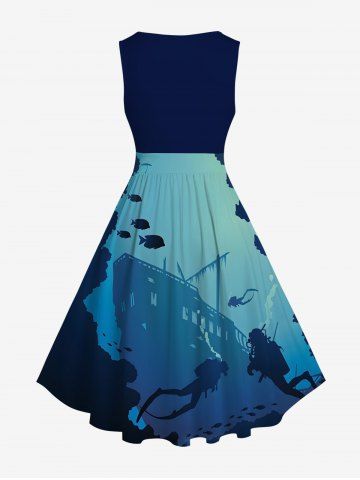 Diver Fish Cruise Ship Colorblock Print Plus Size Matching Hawaii Beach Outfit For Couples - Blue