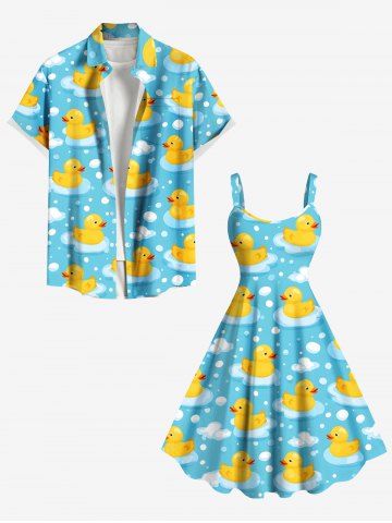 Matching Hawaiian Outfits > Ducks Bubbles Cloud Print Plus Size Matching Hawaii Beach Outfit For Couples