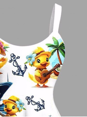 Ducks Coconut Tree Sea Waves Ship Anchor Cruise Print Plus Size Matching Hawaii Beach Outfit For Couples - White