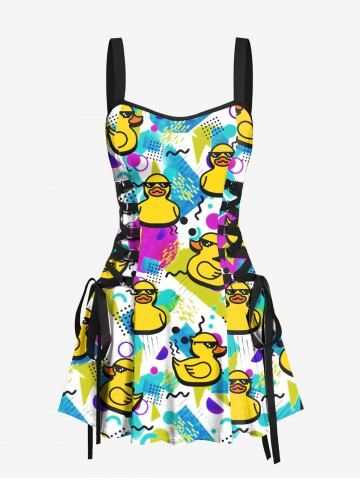 Ducks Geometric Patterns Print Plus Size Matching Hawaii Beach Outfit For Couples - Yellow
