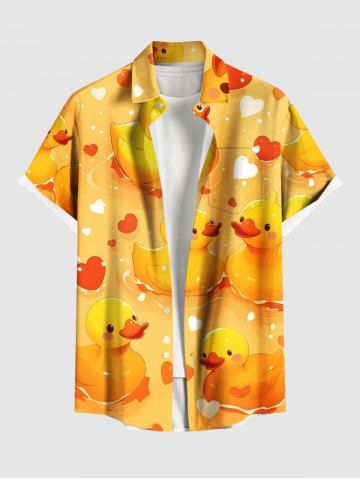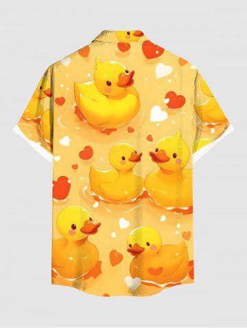 Ducks Heart Print Plus Size Matching Hawaii Beach Outfit For Couples - Yellow