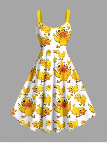 Ducks Print Plus Size Matching Hawaii Beach Outfit For Couples - Yellow