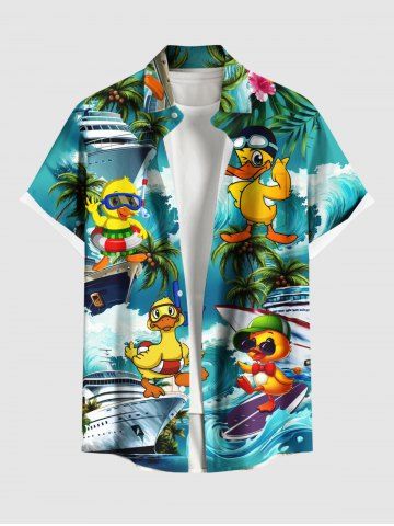 Ducks Ship Coconut Tree Sea Waves Print Plus Size Matching Hawaii Beach Outfit For Couples - Green