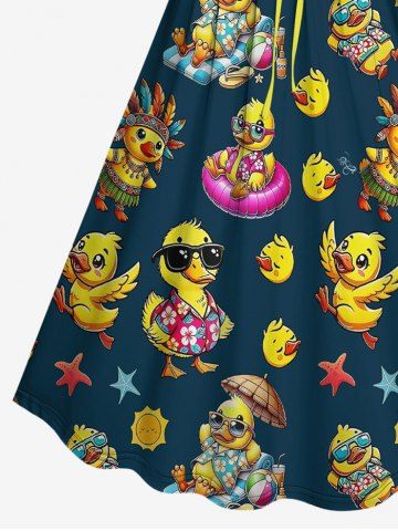 Ducks Swimming Ring Starfish Sun Print Plus Size Matching Hawaii Beach Outfit For Couples - Midnight Blue