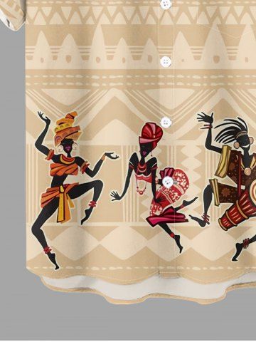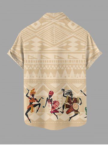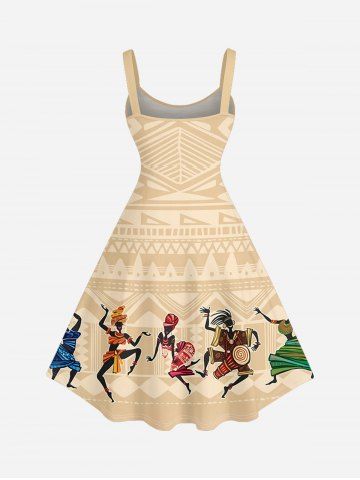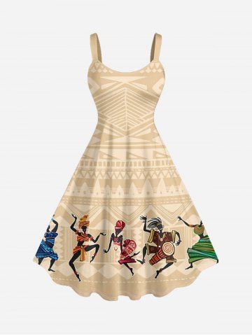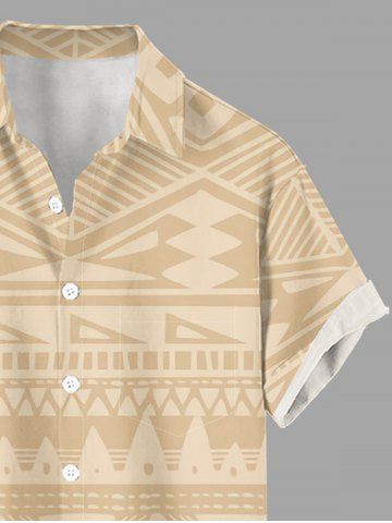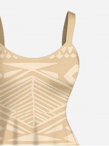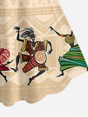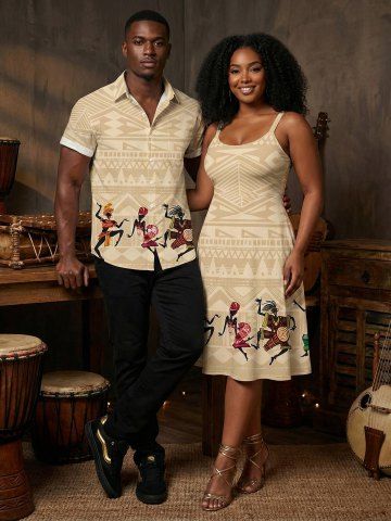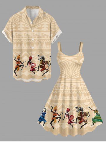 Ethnic Dancer Geometric Pattern Print Plus Size Matching Hawaii Beach Outfit For Couples - Beige