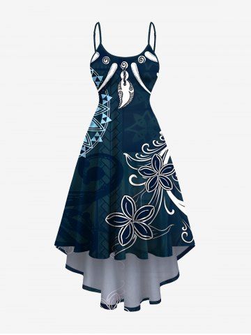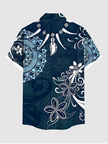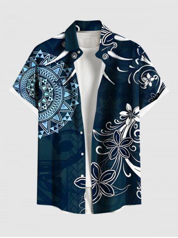 Ethnic Flowers Compass Ivory Necklace Print Plus Size Matching Hawaii Beach Outfit For Couples - Midnight Blue