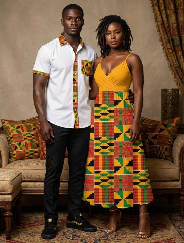 Matching Hawaiian Outfits > Ethnic Geometric Pattern Print Plus Size Matching Hawaii Beach Outfit For Couples