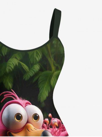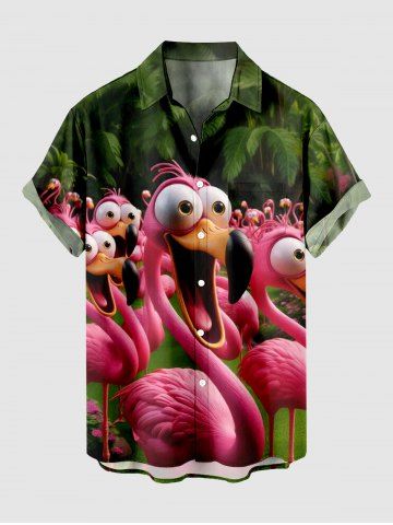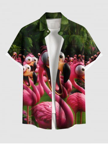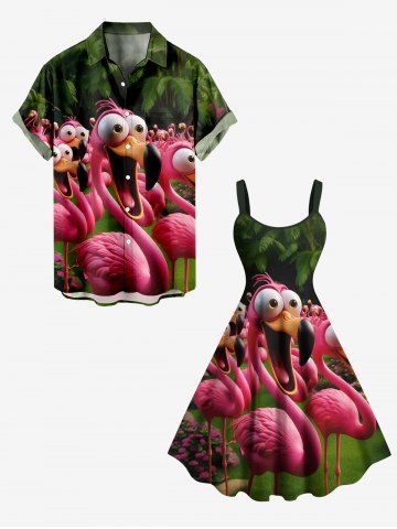 Matching Hawaiian Outfits > Flamingo Coconut Tree Tropical Print Plus Size Matching Hawaii Beach Outfit For Couples