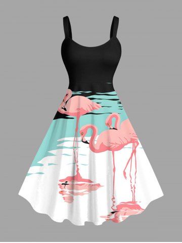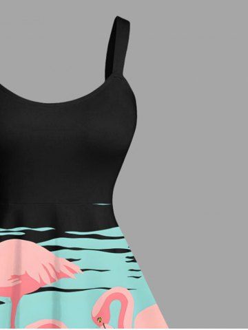 Flamingo Lake Print Plus Size Matching Hawaii Beach Outfit For Couples - Black