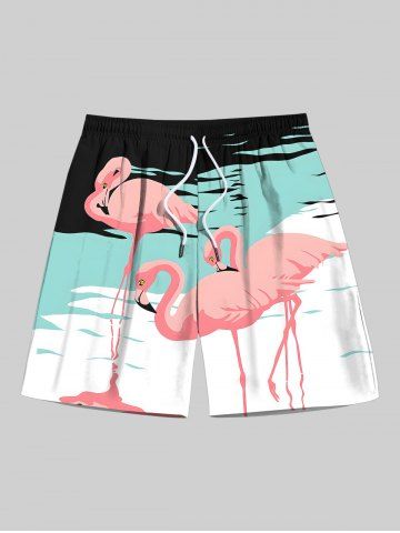 Flamingo Lake Print Plus Size Matching Hawaii Beach Outfit For Couples - Black