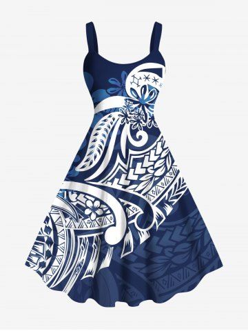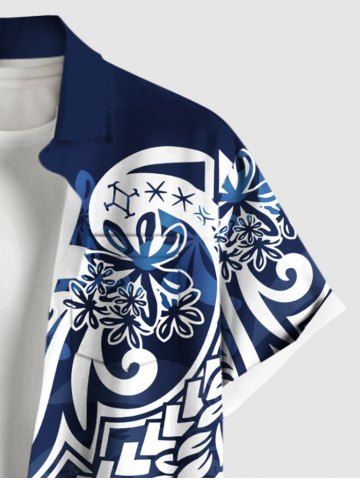 Floral Pattern Print Plus Size Matching Hawaii Beach Outfit For Couples - Blue