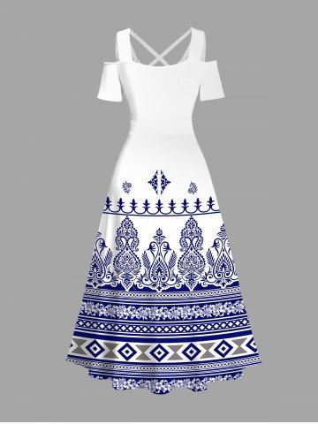 Floral Pattern Print Plus Size Matching Hawaii Beach Outfit For Couples - White