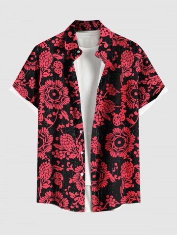 Flower Pine Cones Print Plus Size Matching Hawaii Beach Outfit For Couples - Red