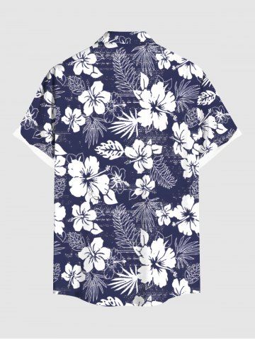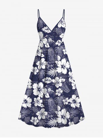 Flower Tropical Leaf Print Plus Size Matching Hawaii Beach Outfit For Couples - Blue