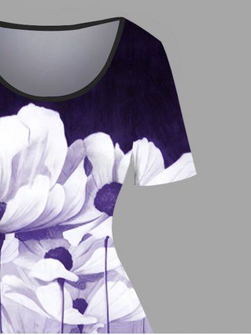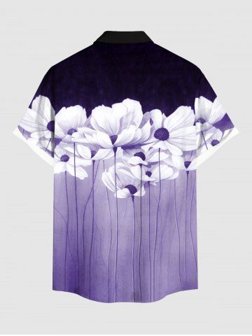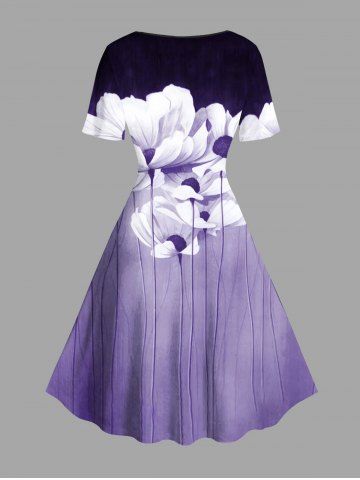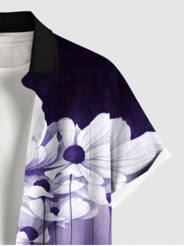 Flower Colorblock Print Plus Size Matching Hawaii Beach Outfit For Couples - Purple