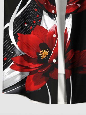 Flower Curve Print Plus Size Matching Hawaii Beach Outfit For Couples - Black