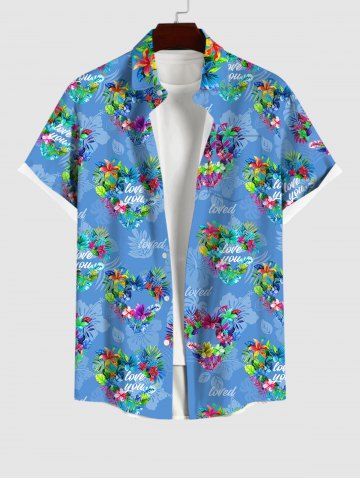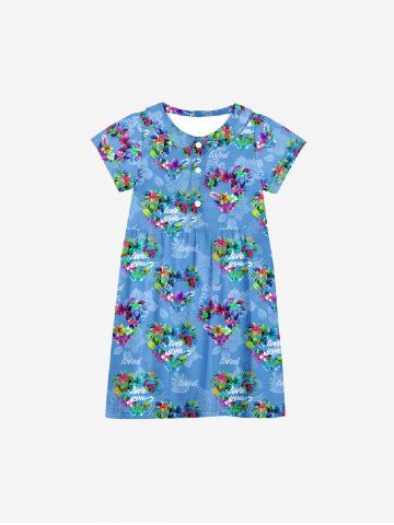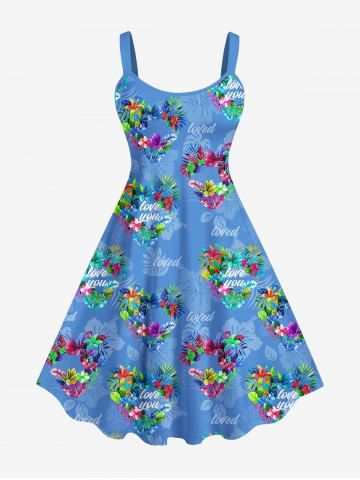 Flower Heart Letters Print Plus Size Matching Hawaii Beach Outfit For Family - Blue