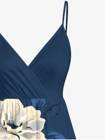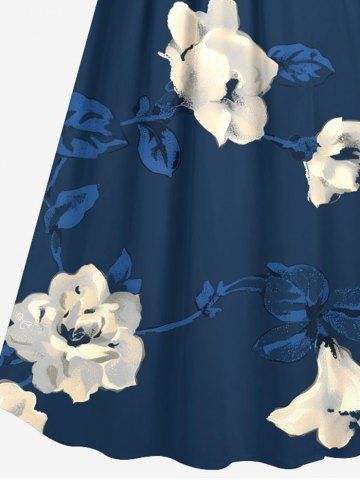 Flower Leaf Branch Print Plus Size Matching Hawaii Beach Outfit For Couples - Sky Blue