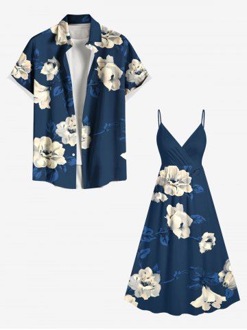 Matching Hawaiian Outfits > Flower Leaf Branch Print Plus Size Matching Hawaii Beach Outfit For Couples