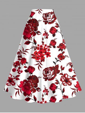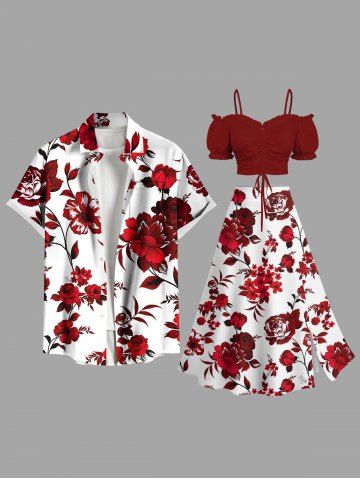 Flower Leaf Branch Print Plus Size Matching Hawaii Beach Outfit For Couples - Red Wine