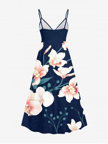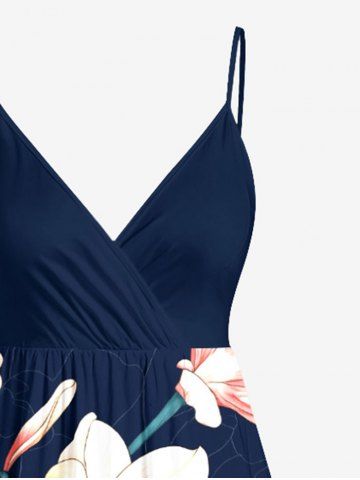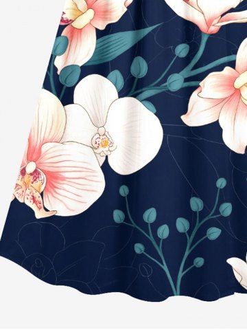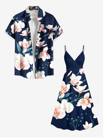 Flower Leaf Branch Print Plus Size Matching Hawaii Beach Outfit For Couples - Navy Blue