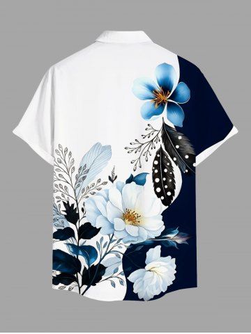 Flower Leaf Branch Print Plus Size Matching Hawaii Beach Outfit For Couples - Deep Blue