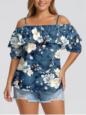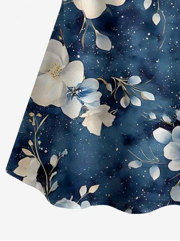 Flower Leaf Branch Print Plus Size Matching Hawaii Beach Outfit For Couples - Deep Blue